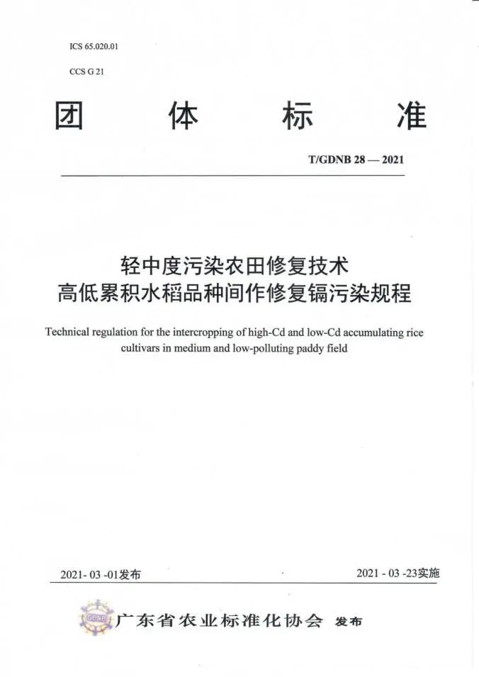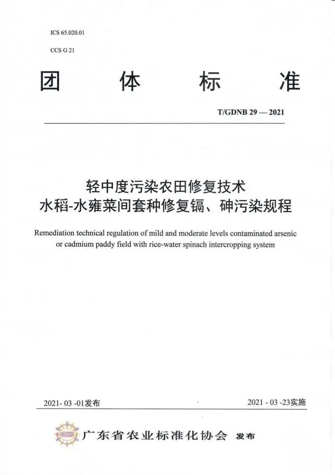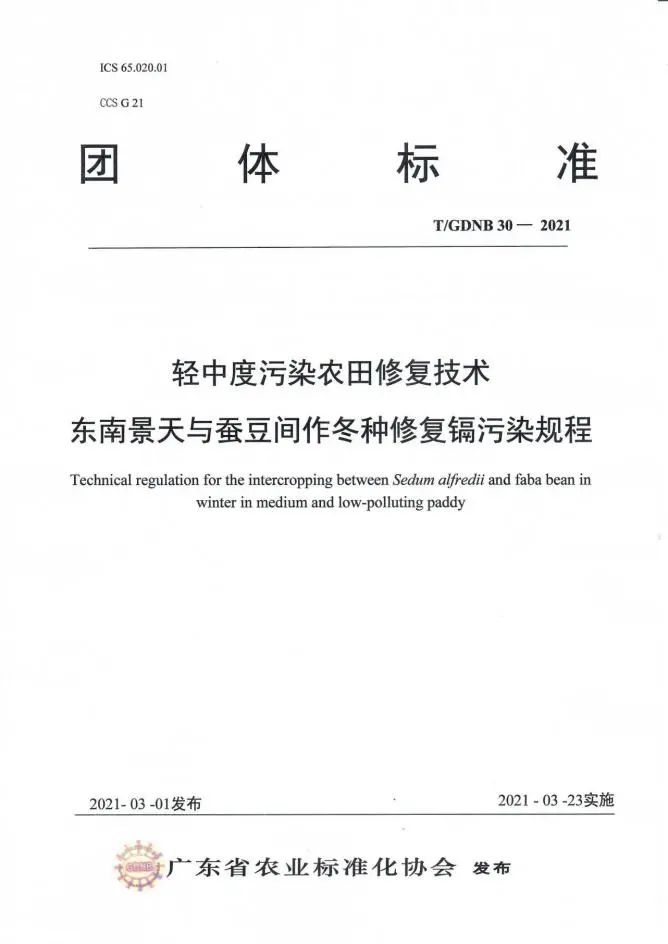 【CONGRATULATION】 喜 報(bào) 熱烈祝賀 我司參與制定的標(biāo)準(zhǔn) 頒布實(shí)施 我司與華南農(nóng)業(yè)大學(xué)資源環(huán)境學(xué)院、中國(guó)科學(xué)院地理科學(xué)與資源研究所等單位合作開(kāi)展高低累積水稻品種間作修復(fù)鎘污染,水稻-水雍菜間套種修復(fù)鎘、砷污染,東南景天與蠶豆間作冬種修復(fù)鎘污染等研究工作,聯(lián)合起草了《輕中度污染農(nóng)田修復(fù)技術(shù) 高低累積水稻品種間作修復(fù)鎘污染規(guī)程》(T/GDNB28-2021)、《輕中度污染農(nóng)田修復(fù)技術(shù) 水稻-水雍菜間套種修復(fù)鎘、砷污染規(guī)程》(T/GDNB29-2021)、《輕中度污染農(nóng)田修復(fù)技術(shù) 東南景天與蠶豆間作冬種修復(fù)鎘污染規(guī)程》(T/GDNB30-2021),通過(guò)廣東省農(nóng)業(yè)標(biāo)準(zhǔn)化協(xié)會(huì)組織的標(biāo)準(zhǔn)審定并發(fā)布實(shí)施(2021年3月23日實(shí)施)。 廣東韶科環(huán)??萍加邢薰?nbsp; 20121年4月9日